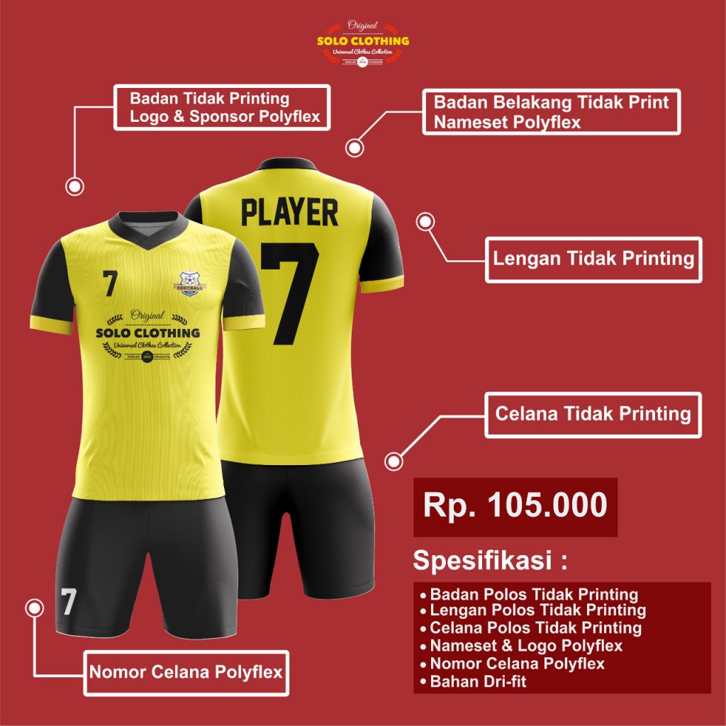 Sebenarnya, jersey merupakan salah satu perlengkapan pakaian yang wajib digunakan baik itu dalam permainan bola, futsal, basket, tenis, dan lain sebagainya. Umumnya, jersey dibuat dengan menggunakan bahan polyester. Bahan tersebut dikenal memiliki karakter tidak berpori, mengkilap, bisa menahan panas atau hujan.