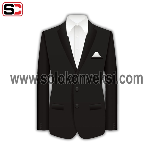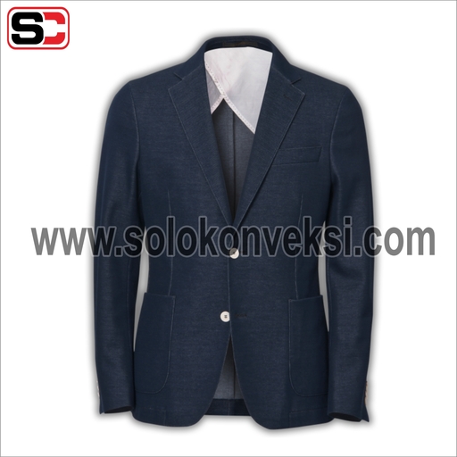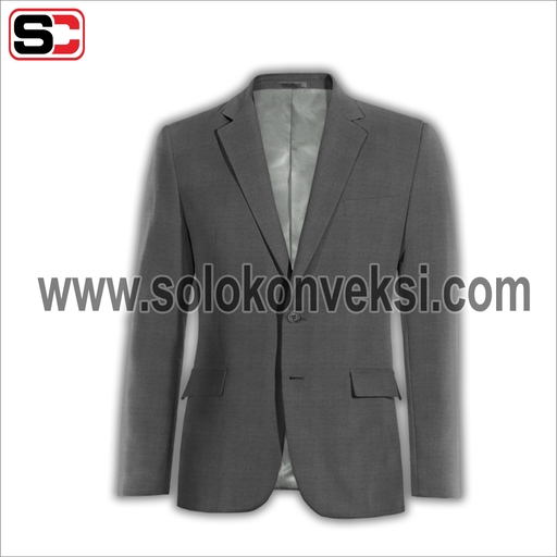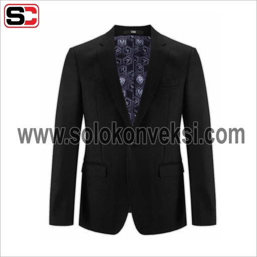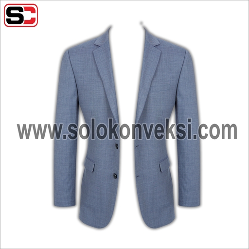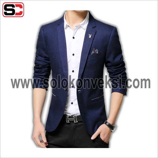 Model jas ini terbuat dari bahan milano dengan detail notch lapel, kancing bukaan depan, dan terdapat 2 kantong dibagian samping kanan dan kiri. Kemudian terdapat saku dada di bagian kiri yang biasanya dikreasikan dengan diisi sapu tangan, agar penampilan lebih maksimal. Jas ini bisa kalian padukan dengan busana kantor atau dipakai di acara formal lainnya. Jas ini memiliki harga Rp. 612.000.